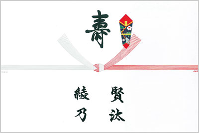 結婚引出物、結婚内祝いをご購入の方に無料のサービスです。お好みのデザイン包装紙からお選びいただけます。熨斗(のし)は結び切りの10本の水引。