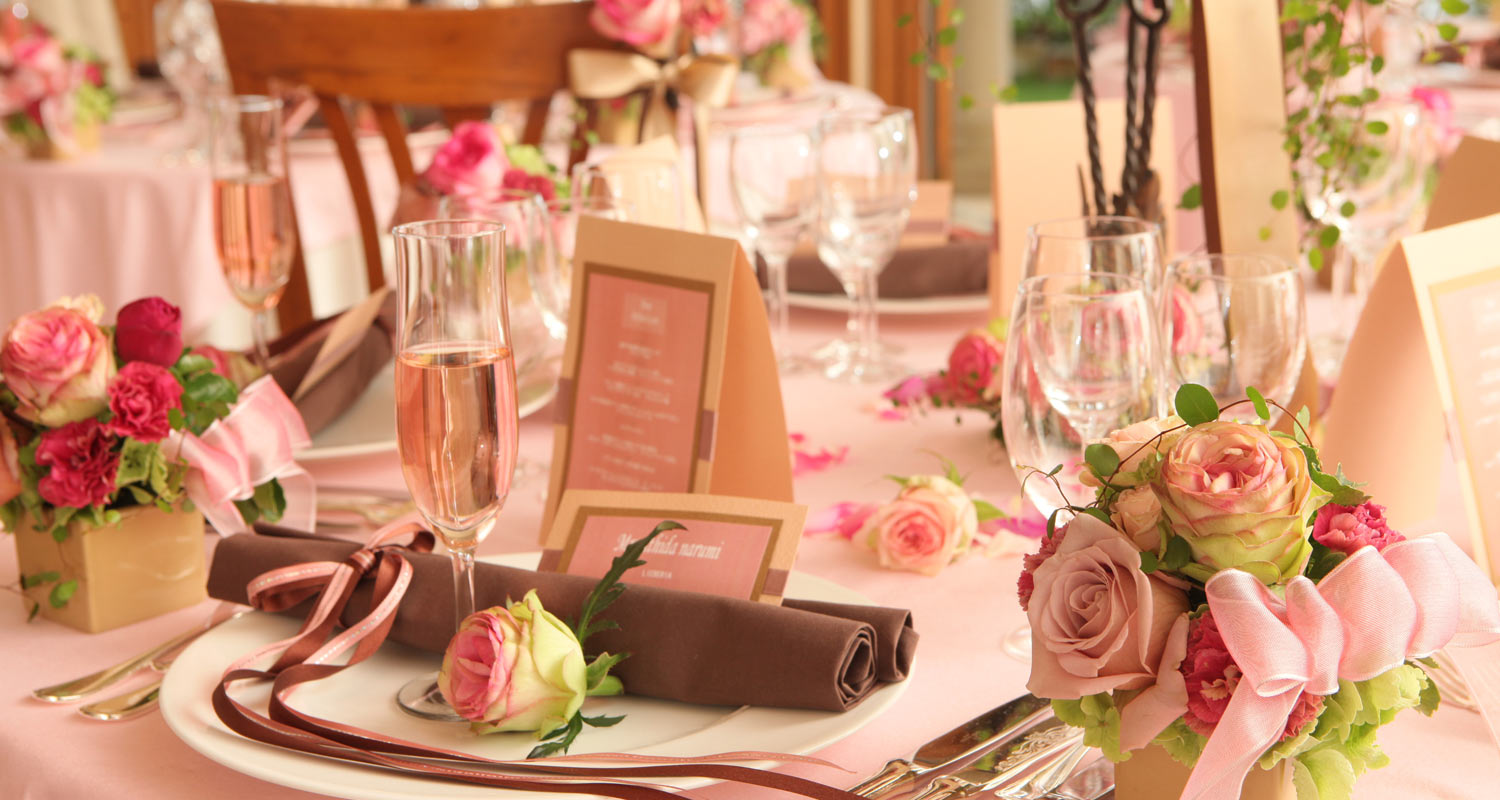 ウエディングコーディネートはメインテーブルやゲストテーブルの上に一つの世界を作り上げることがとても大切です。 ウエディングドレスを着ている花嫁さんや新郎さんをより際立たせたり、同じ世界観に馴染ませたりと様々な角度からコーディネートしていきます。 テーブル上を飾る席札等の小物と色を合わせたり、反対色を使ってメリハリをつけるなど工夫が必要です。 自分の好きな花を飾るのも良いでしょう。ただし、香りのきつい花を使用する際には料理の香りを損なったりすることも考慮して選びましょう。 あとは当日受付けにて配られる席次表や、プロフィールブック等のデザインと統一感がでるよう造り上げましょう。 上記に注意して組み立てると素晴らしいウエディングコーディネートができるはず。